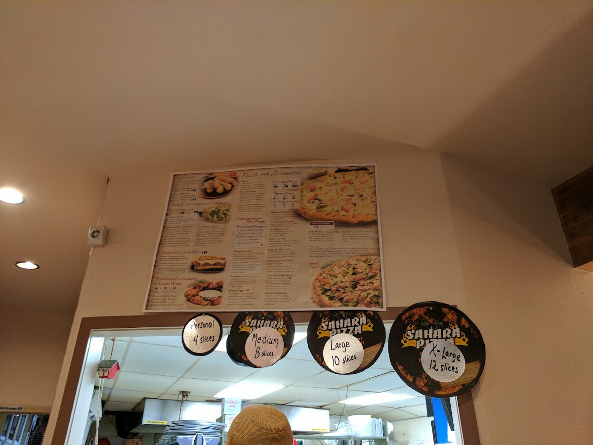 Sahara Pizza offers a diverse menu, perfect for a variety of tastes. Their wings are a standout, with options like Serengeti BBQ Wings, Honey Bourbon Wings, and the fiery PlainFire Walker Wings. For those looking for a lighter option, the Garden Salad and Greek Salad are fresh and vibrant, while the Grilled Chicken Caesar Salad and Caesar Salad provide a richer experience. Their grinders range from the classic Meatball Grinder to the bold Ranch Chicken Grinder and the tropical Hawaiian Grinder. For a refreshing drink, try a Mist Twist, Pepsi, or Orange Crush. Pasta lovers can enjoy dishes like the customizable Build Your Own Pasta or the hearty Spaghetti and Meatballs. If you’re in the mood for something creamy, the Fettuccine Alfredo or Salmon Creamy Pesto Fettuccine are excellent choices. Desserts like the Gh Giant Van Choc Cone and Cinnamon Dessert Sticks add a sweet finish to any meal. The pizza selection includes both thin and regular crusts, with popular choices such as Chzburger Paradise Pizza and Pepperoni Popper. Don’t forget to complement your meal with sides like BBQ, Thousand Island, or Hot Sauce. Whether you’re craving wings, pizza, pasta, or dessert, Sahara Pizza’s menu delivers a satisfying experience for all.