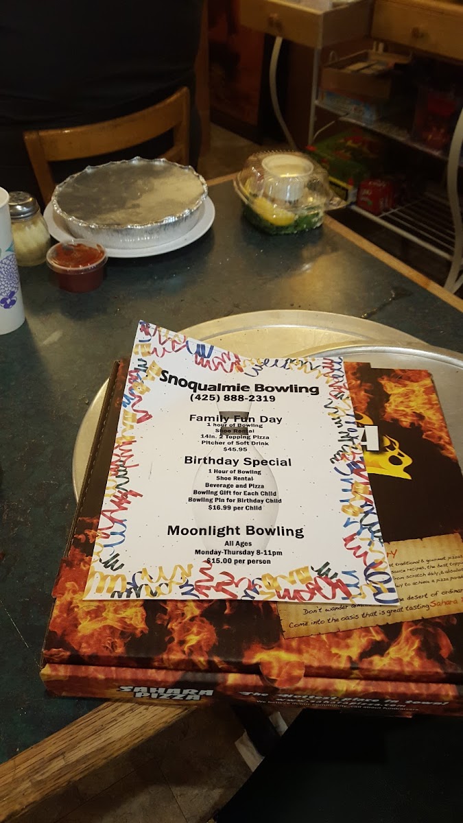 Our ultimate Sahara pizza is topped with black olives, green peppers, sausage, marinara, mozzarella, mushrooms, onions, pepperoni, ham.